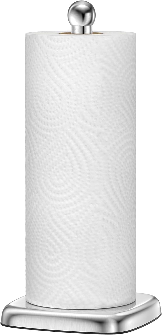 Compatible with Most Kitchen Rolls: This paper towel holder stand is equipped with a widened base and a heightened pole length to match most paper towels. Please feel free to buy, and we provide return service in case it does not match.