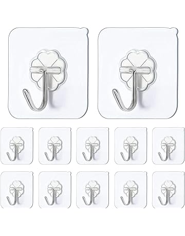 JelKen Self Adhesive Hooks,12 PCS Heavy Duty Door Wall Adhesive Hooks for Kitchen, Bathroom, Office, Closet, Hanging Coat Cloth Towel Key Decorations